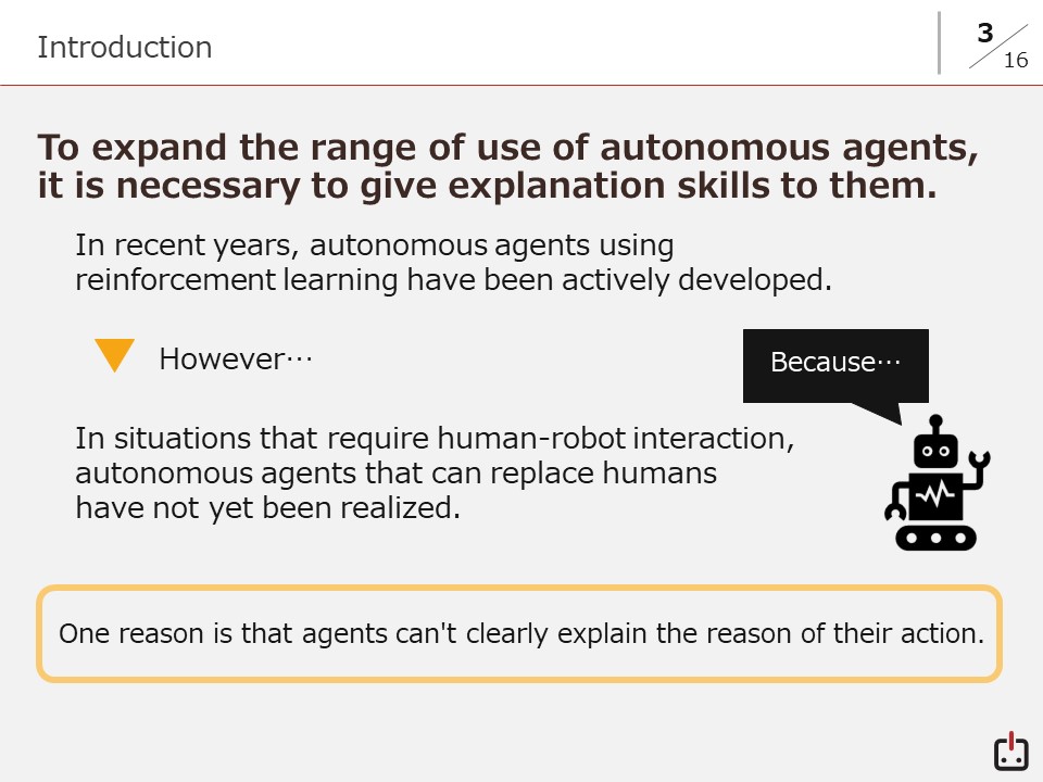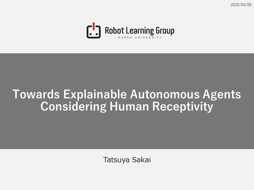 - Explainable autonomous robots -a survey and perspective-, Advanced Robotics, Vol.36, 5-6, pp.219-238, 2022