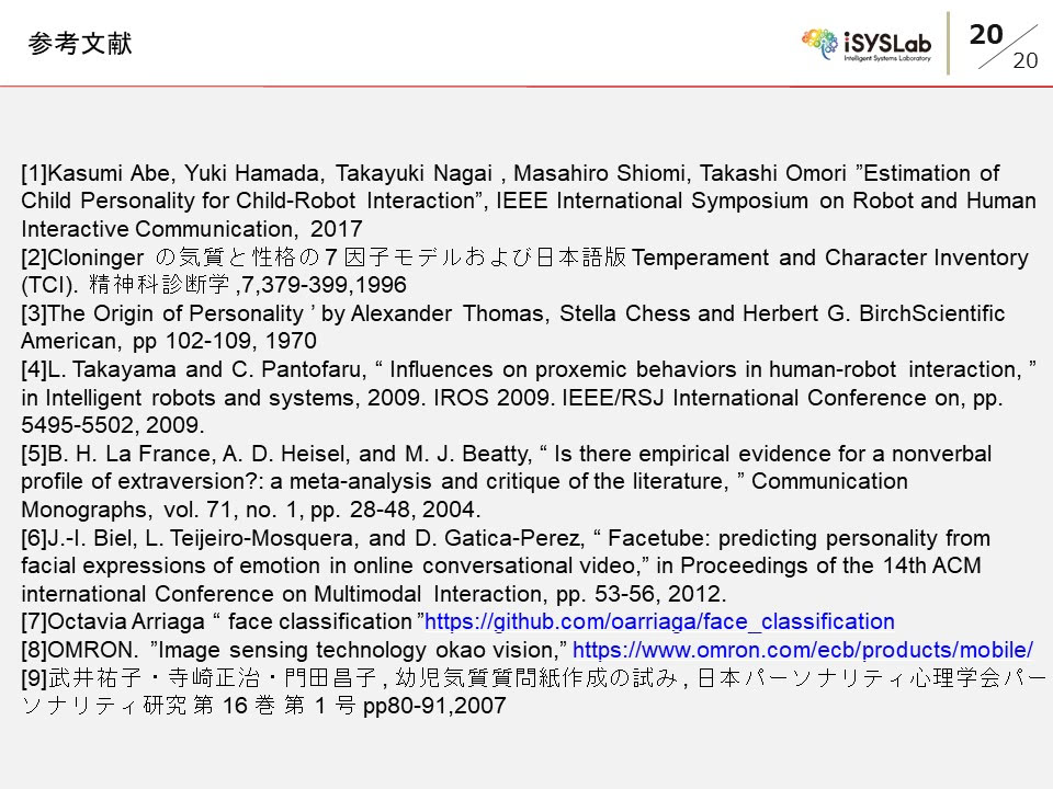 テレプレゼンスロボットを用いた乳幼児の振る舞いによる気質推定